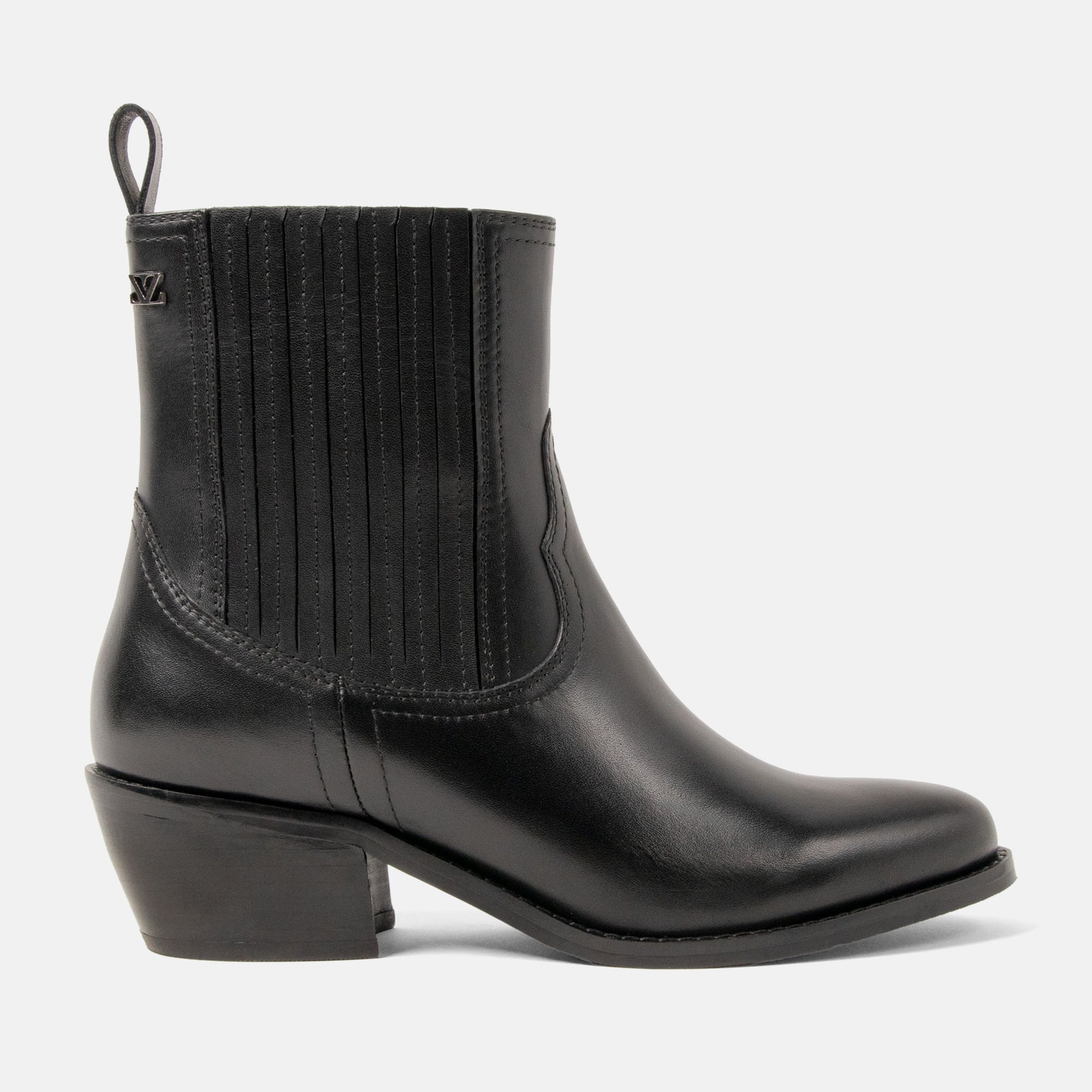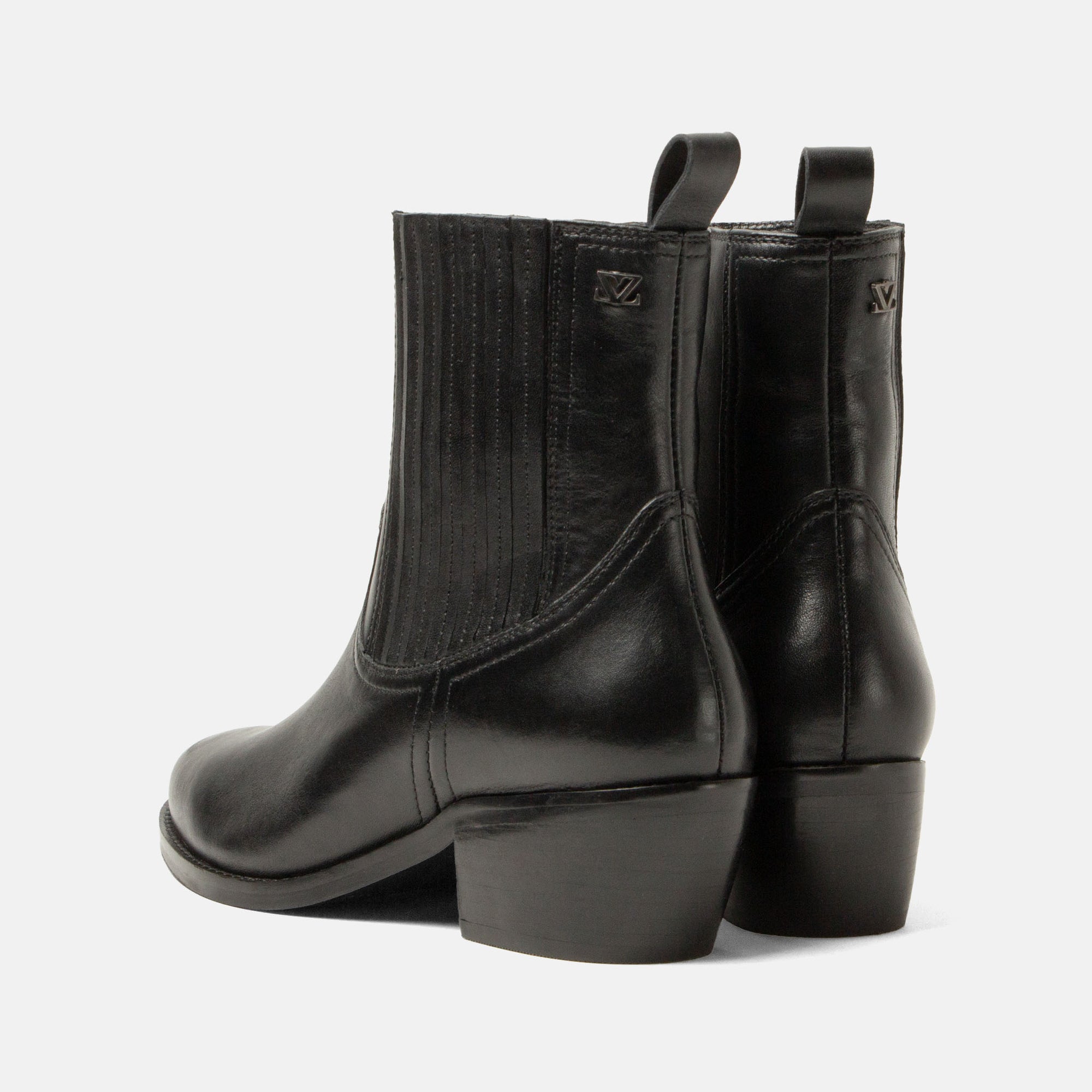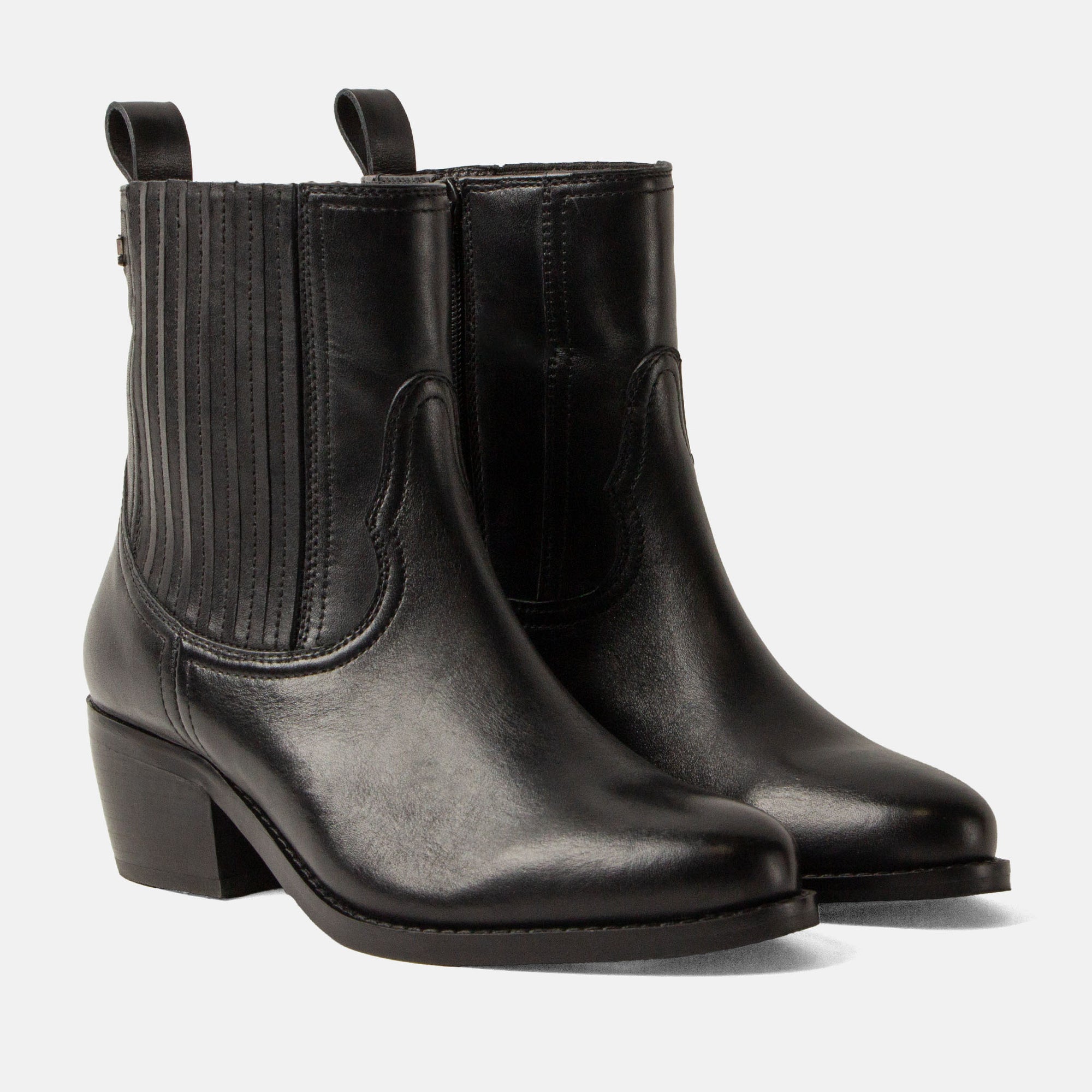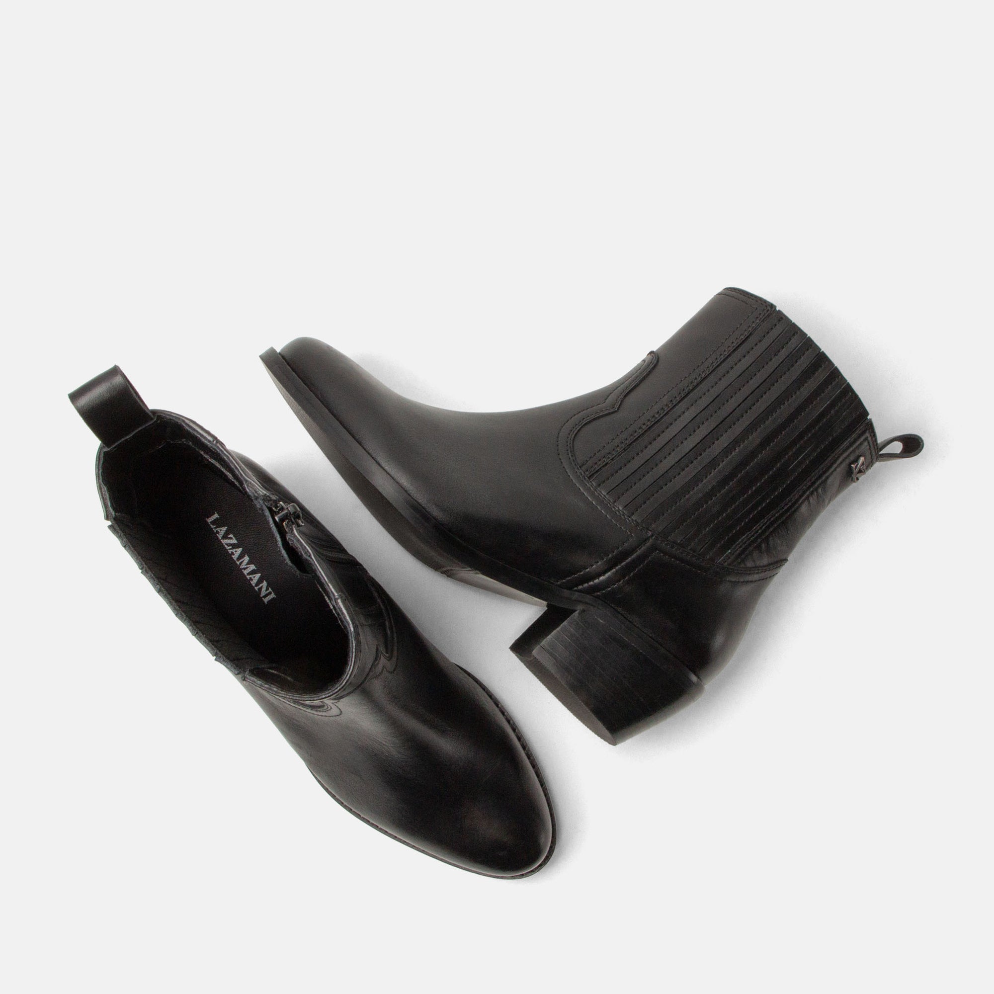 Entdecke deine neuen Go-to-Boots von Lazamani. Das glatte schwarze Leder verleiht diesem Modell eine zeitlose, luxuriöse Ausstrahlung. Western-inspirierte Details und der stabile Blockabsatz bringen eine Prise Charakter ins Spiel, während der Reißverschluss und der elastische Einsatz das An- und Ausziehen erleichtern. Dank der bequemen Passform und des vielseitigen Looks kombinierst du sie mühelos mit einer Skinny Jeans für einen lässigen Style oder trägst sie zu einem Kleid für einen stilvollen Kontrast.