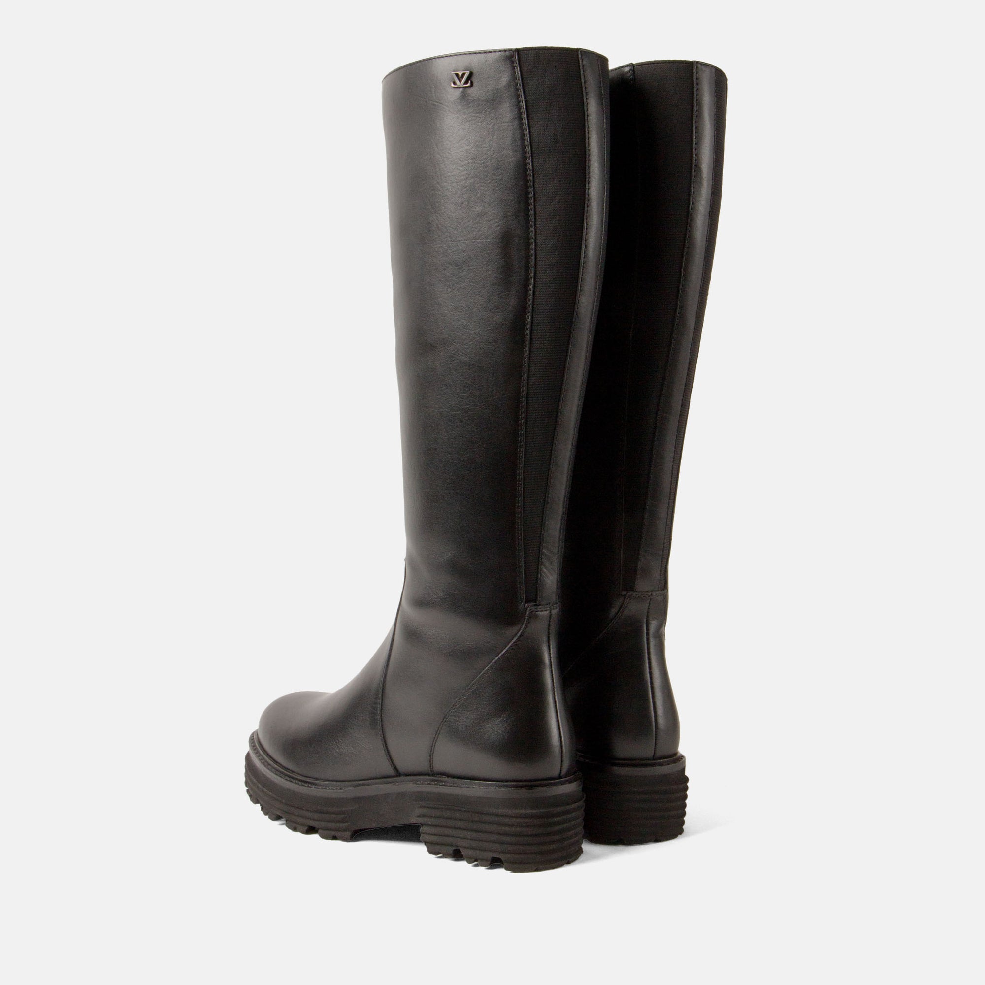 Schlicht, modern und vielseitig kombinierbar – diese hohen schwarzen Stiefel von Lazamani sind ein echtes Garderoben-Essential. Der ca. 39 cm hohe Schaft aus glattem Leder schmiegt sich elegant ans Bein, während das elastische Einsatzpanel an der Rückseite für eine bequeme Passform und zusätzliche Bewegungsfreiheit sorgt. Die leichte Profilsohle verleiht dem Design eine moderne Note und bietet gleichzeitig Grip und Stabilität für all deine täglichen Wege. Innen sorgt das weiche Futter in Kombination mit dem Lederfußbett auch bei langem Tragen für optimalen Komfort. Perfekt zu einer Skinny Jeans und Oversize-Strick für einen lässigen City-Look oder zu Kleid und langem Mantel für ein elegantes Winteroutfit.