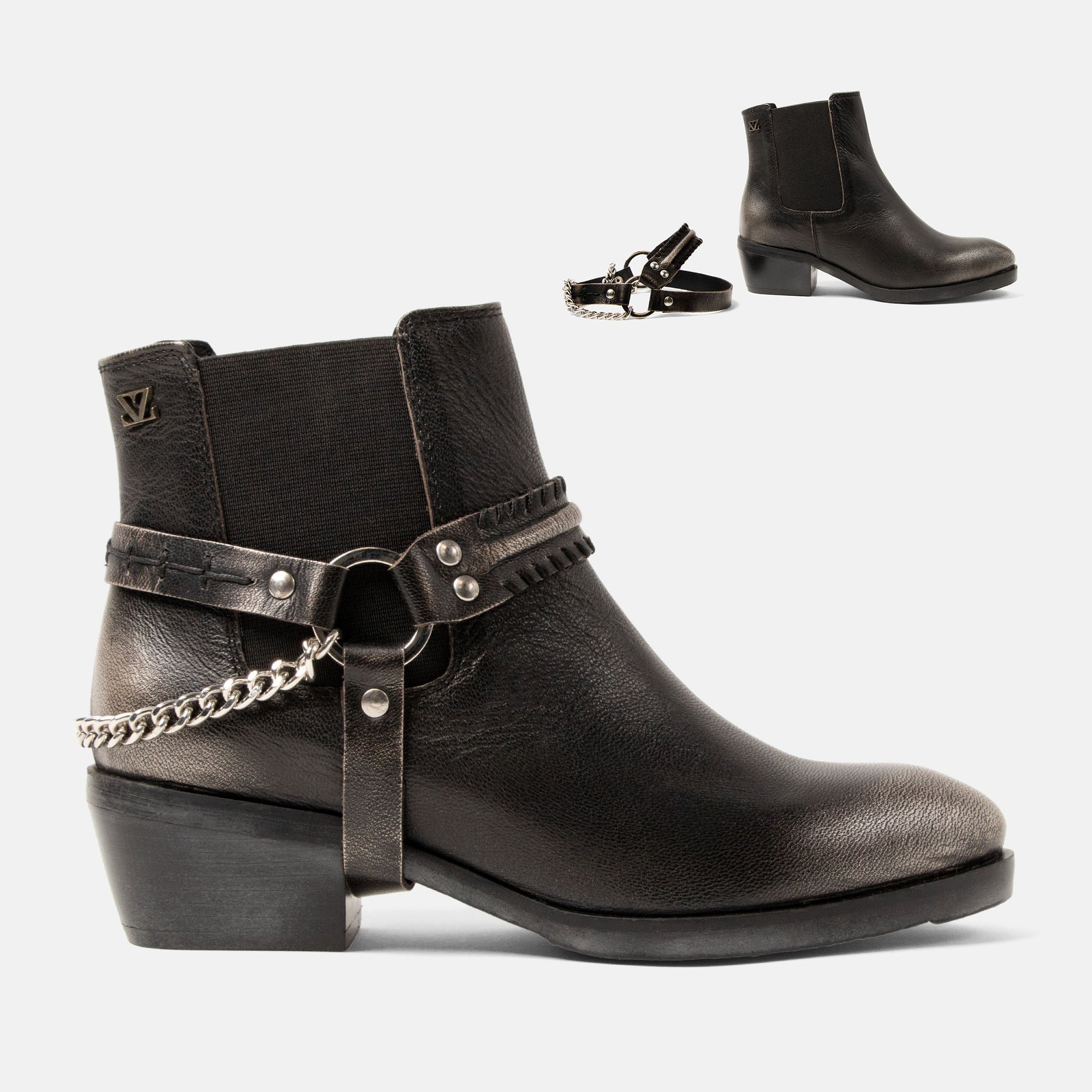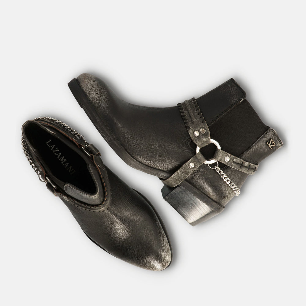 Zwei Looks – ein Paar. Diese Chelsea-Stiefeletten von Lazamani sind cool mit einem Augenzwinkern. Das Leder mit Vintage-Metallic-Finish, die chunky Chain und der von Western-Styles inspirierte Riemen machen sie zu echten Hinguckern. Für einen dezenteren Look lässt sich der Riemen ganz einfach per Knopfverschluss abnehmen. Dank der elastischen Einsätze lassen sie sich mühelos an- und ausziehen und bieten ganztägigen Tragekomfort. Perfekt zu Jeans oder einem verspielten Kleid für einen edgy Touch.