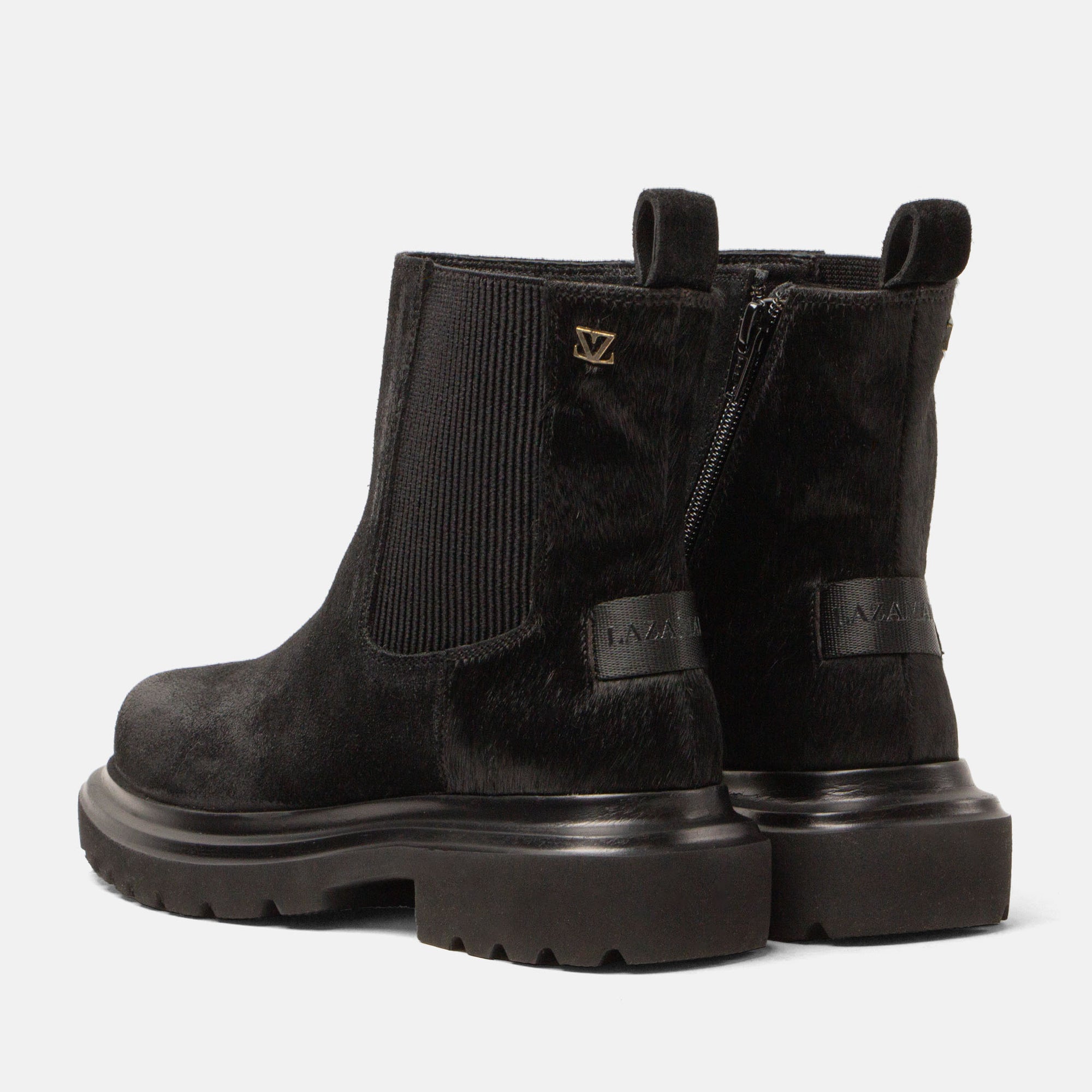 Diese schwarzen Damenboots sind alles andere als basic. Das Obermaterial kombiniert weiches Veloursleder mit Ponyfell an der Ferse – robust genug für einen edgy Look, aber minimalistisch genug, um zu allem zu passen. Dank Reißverschluss auf der einen Seite und elastischem Einsatz auf der anderen schlüpfst du ganz einfach hinein – für einen Style, der Komfort und Coolness vereint. Trage sie zur Jeans mit Oversized-Blazer für einen lässigen City-Look oder zum Midikleid für einen stilvollen Kontrast. Von morgens bis abends tragbar – echte Allrounder, die in deiner Wintergarderobe nicht fehlen dürfen.