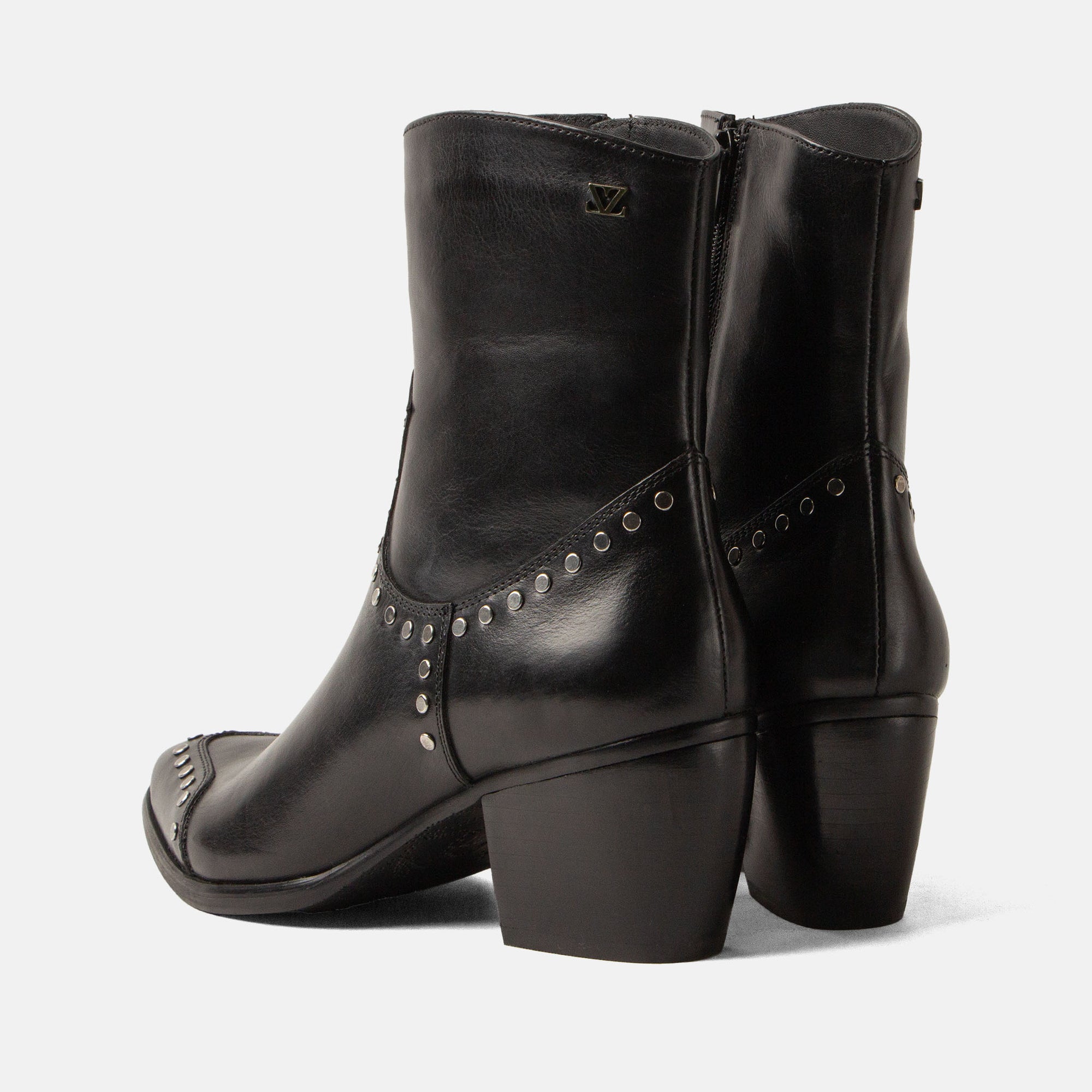 Elegant mit einem Hauch Rock-Chic – diese Stiefeletten von Lazamani sind für Frauen gemacht, die Stil mit Charakter lieben. Das glatte Leder bildet eine luxuriöse Basis, während silberfarbene Nieten verspielt entlang der Linien platziert sind und so einen dezenten, markanten Effekt erzeugen. Der 6 cm hohe Blockabsatz verleiht dir ein wenig zusätzliche Höhe, ohne auf Komfort zu verzichten. Die spitze Kappe sorgt für eine feminine und raffinierte Ausstrahlung. Kombiniere sie mit Skinny Jeans und Lederjacke für einen coolen Look oder trage sie zu einem fließenden Kleid für einen stilvollen Kontrast.