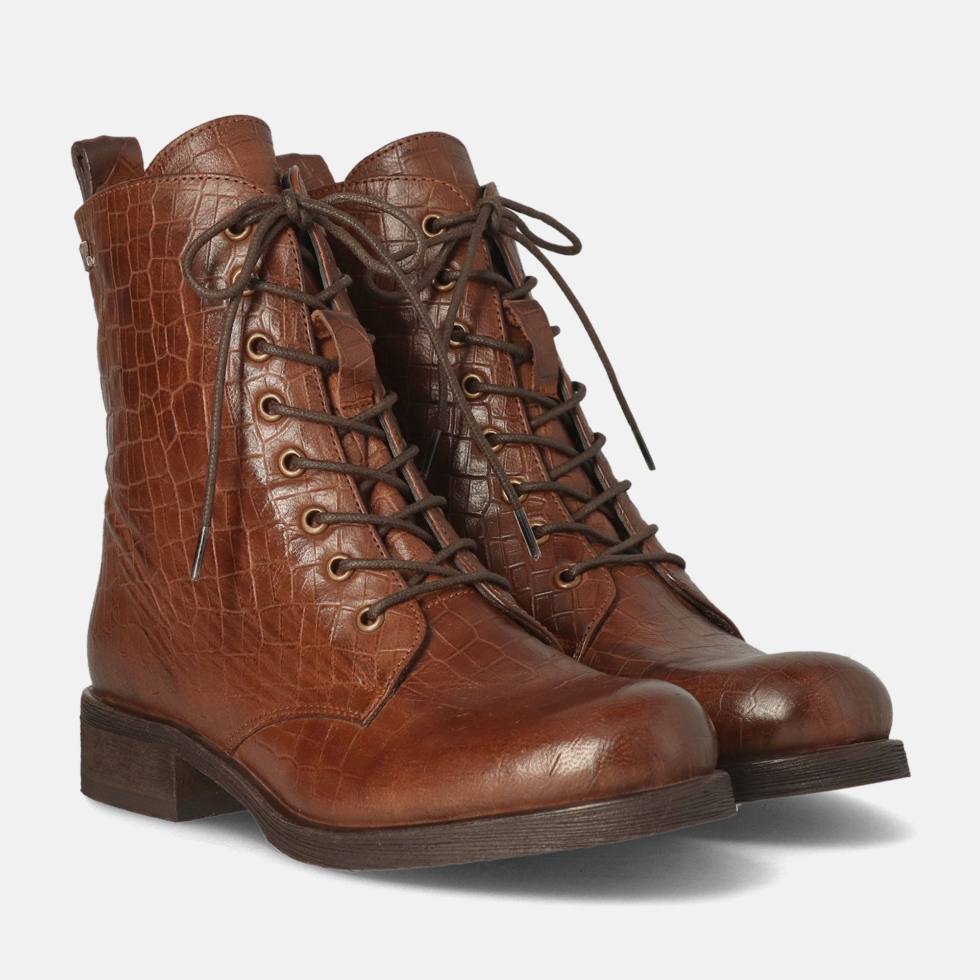 Schnürstiefeletten aus Leder mit Krokoprägung