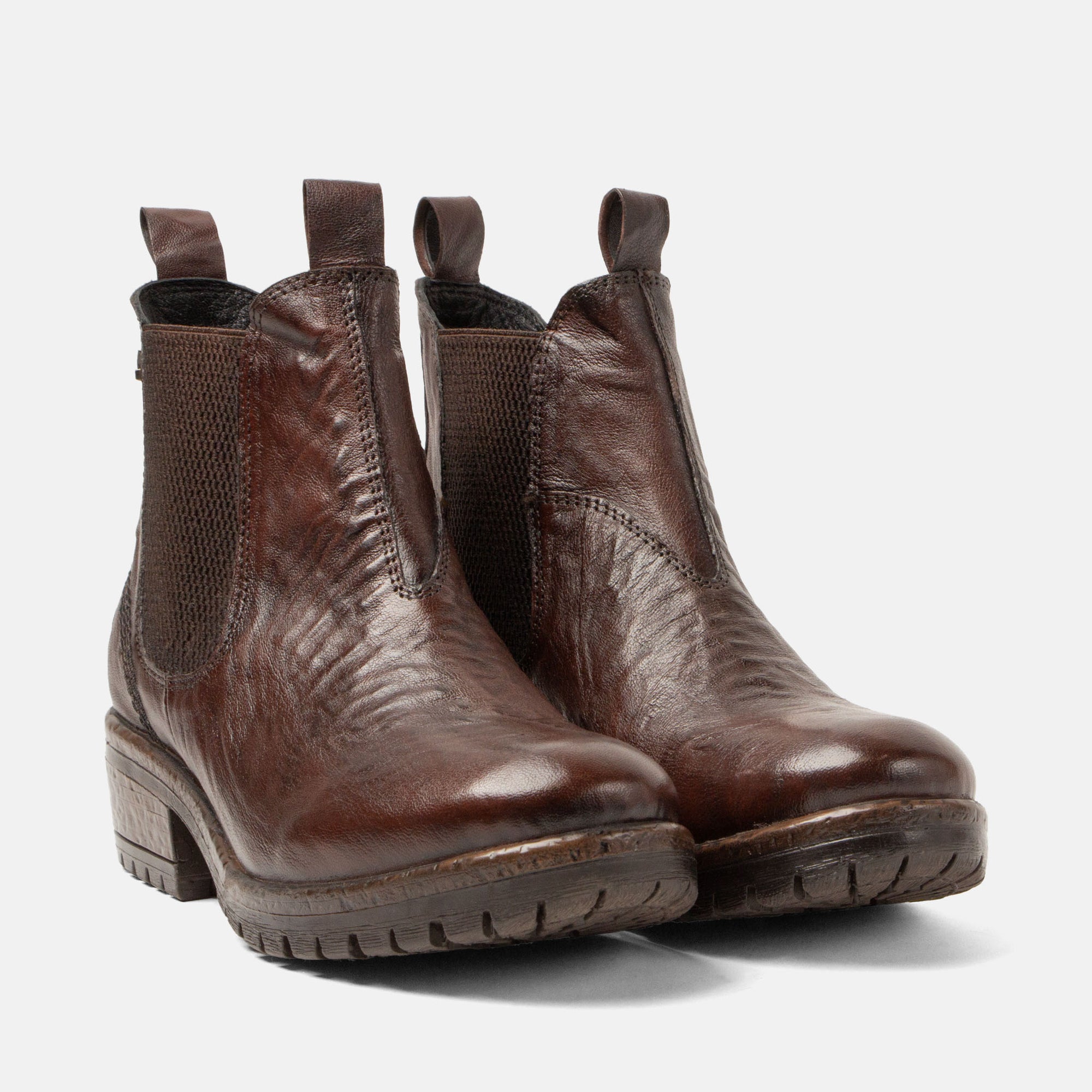 Mit diesen lässig-eleganten Chelsea-Boots von Lazamani verleihst du jedem Look im Handumdrehen einen Hauch von Edge. Das glänzende Leder mit subtiler, leicht geraffter Struktur strahlt Luxus aus – mit einem Hauch lässiger Nonchalance. Dank der elastischen Seiteneinsätze schlüpfst du mühelos hinein, während die markante Profilsohle für guten Halt und angenehmen Tragekomfort sorgt. Der braune Akzent an der Sohlenseite setzt einen stilvollen Kontrast und verleiht den Boots eine moderne, zeitgemäße Note. Durch die bequeme Absatzhöhe kannst du sie problemlos den ganzen Tag tragen. Kombiniere sie mit deiner Lieblingsjeans und einem Blazer für einen eleganten City-Look oder mit einem Kleid für einen coolen, femininen Stilbruch.