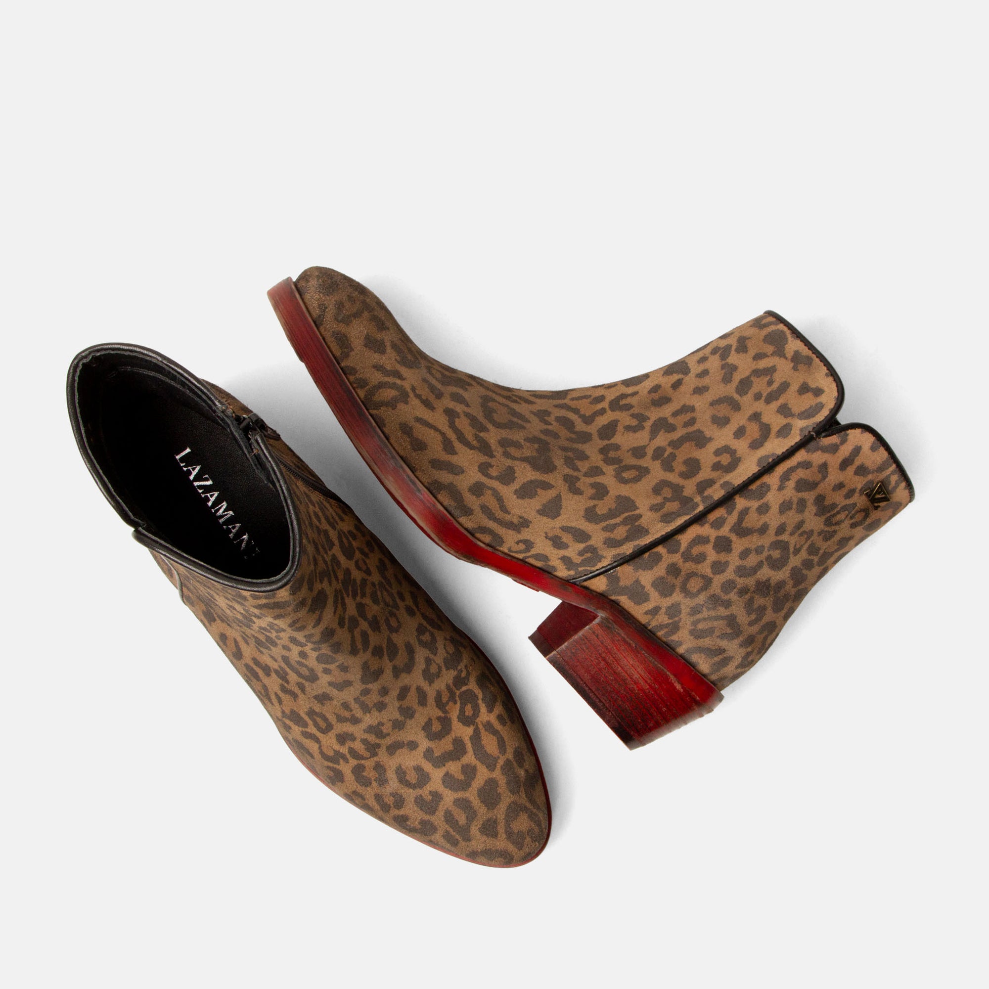 Auffallen garantiert! Diese trendigen Ankle Boots von Lazamani sind aus weichem Wildleder mit Leopardenprint gefertigt und DAS Statement-Piece für die Herbst-/Winterkollektion 2025. Der niedrige Blockabsatz von 4,5 cm und das schlanke, elegante Silhouett verleihen ihnen eine feminine Note, während die warmen Farbtöne einen coolen, zugleich femininen Look kreieren. Besonderes Highlight: die dunkelrot polierte Sohle, die bei jedem Schritt einen Hauch von Individualität zeigt. Dank des seitlichen Reißverschlusses schlüpfst du mühelos hinein und hinaus, während das weiche Futter und das Lederfußbett für hohen Tragekomfort sorgen. Perfekt kombinierbar mit Denim, Leder oder einem fließenden Kleid – für einen Auftritt, der garantiert alle Blicke auf sich zieht.