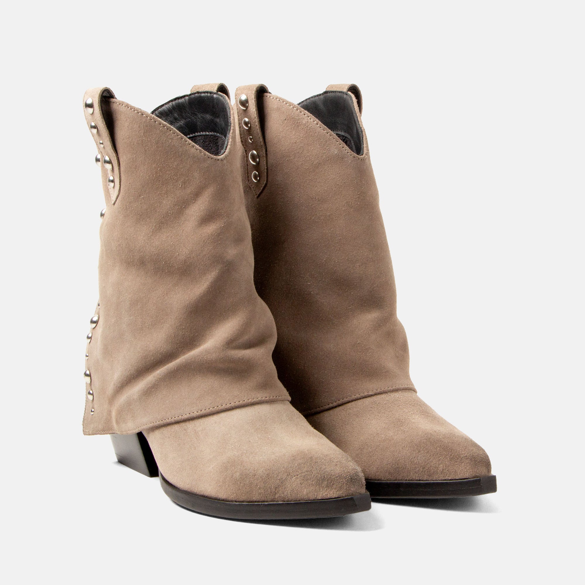 Diese Wildleder-Stiefeletten sind gemacht, um aufzufallen. Das überlappende Obermaterial mit markanten Nieten macht sie zu einem echten Eyecatcher in deiner Schuhsammlung. Die spitze Kappe, der 5 cm hohe Blockabsatz und die feminine Western-Vibe verleihen jedem Outfit eine extra Portion Attitude. Die Yara Boots von Lazamani sind aus hochwertigem Veloursleder gefertigt, mit weichem Textilfutter und einer lederbezogenen Innensohle für angenehmen Tragekomfort. Kombiniere sie mit einem fließenden Kleid, einer Cropped-Jeans oder einer Ledershorts – und dein Look ist sofort on point.